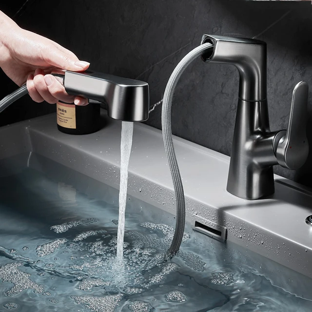 Húzza Ki Az Emelő Konyhai Csaptelepet 360°Forgó Fürdőszoba Medence Csaptelep Rozsdamentes Acél Kézmosó Permetezőgéppel