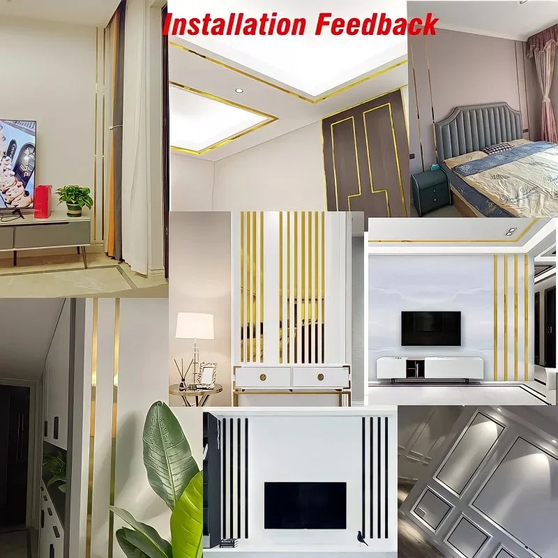 1 Tekercs Arany Fali Matrica Rozsdamentes Acél os Dekoráció Vonalak Titán Fal Mennyezeti Szél Szalag Nappali