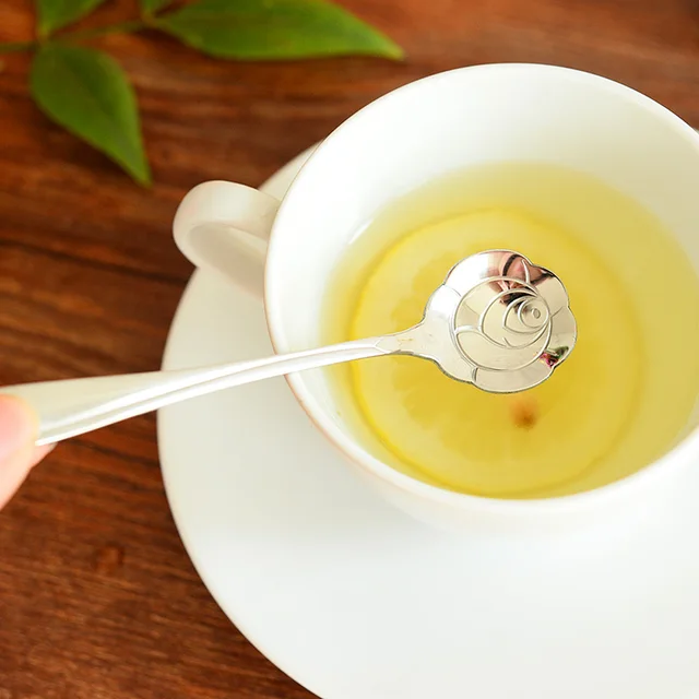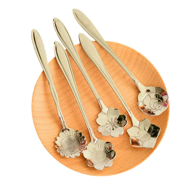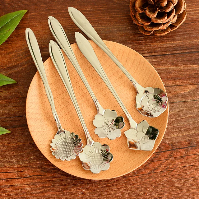 1Db Rozsdamentes Acél Virágkanállal Hosszú Aranyen Kreatív Cseresznyevirágok Kozmosz Szív Rózsa Desszert Kávékeverő Kanál