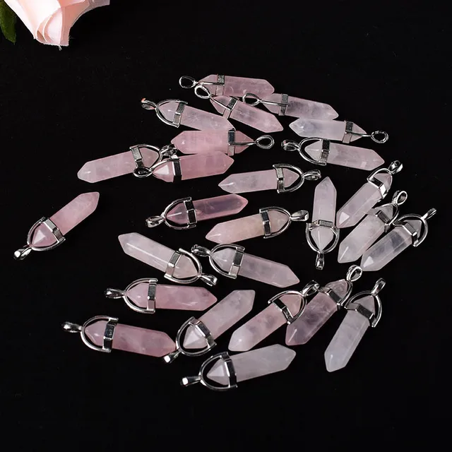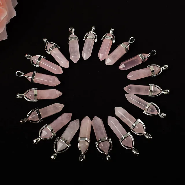 1 Db Natúr Kristály Ásványi Rózsa Hatszögletű Point Gyógyító Kő Egyszerű Medál Férfiak Női Ékszerek