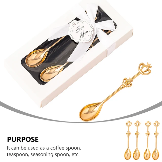 4 Db Arany Kanál Készlet Kicsi Teáskanál Kávékanál Fagylalt Desszert Kanál Ezüst Arany Rozsdamentes Acél Kávé Tea