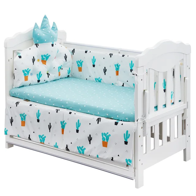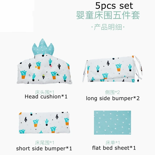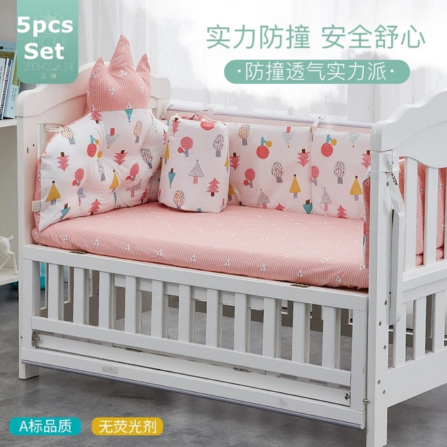 5 Db Korona Pamut Kiságy Lökhárító Baba Csecsemőágyak Eltávolítható Mosdó Ágynemű