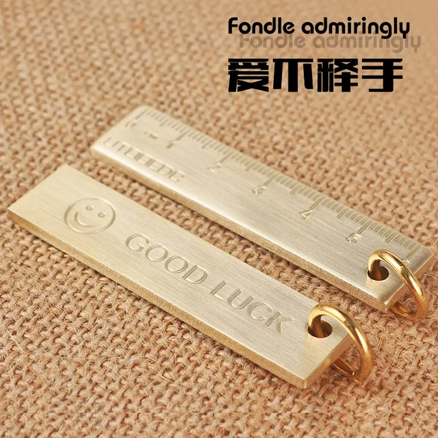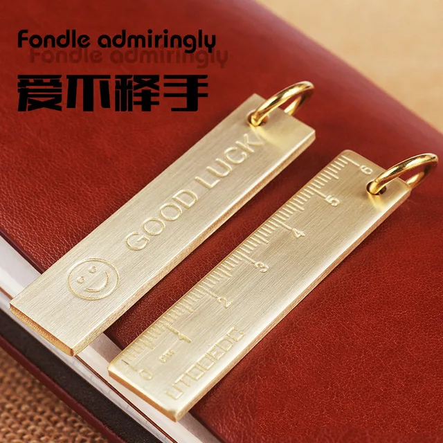 6 Cm Kicsi Réz Vonalzó Tiszta Sárgaréz Fém Vintage Kulcstartó Megvastagodott Medál Dekoráció