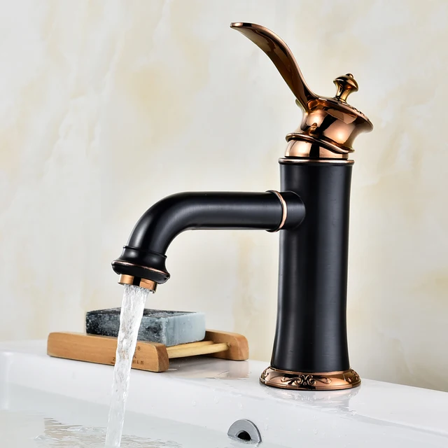 Fekete Divatos Csap Fürdőszoba Keverő Egy Lyukú Felületre Kézmosó Csaptelep