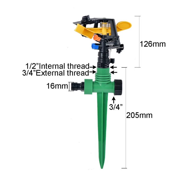Double Rocker Fúvóka 360 Fokos Forgó Sugárhajtású Öntöző 1/2 ”Szál Műanyag Tüske Beillesztése Őrölt Kert Öntözés