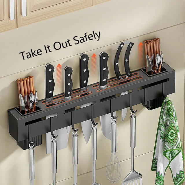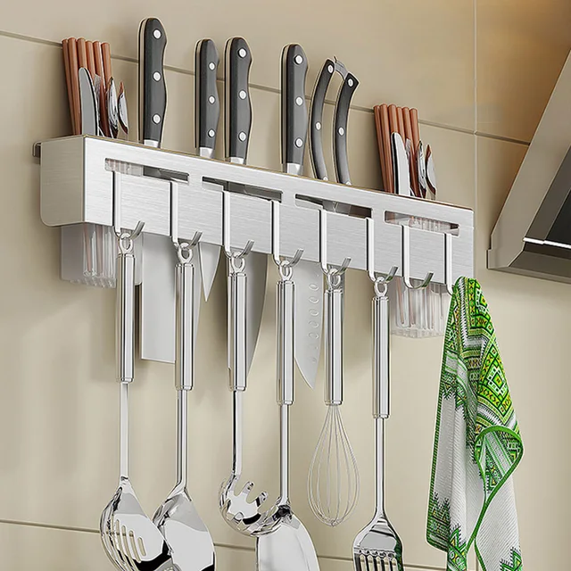 Falra Szerelt Késtartó Pálcikák Állvány Horgos Rozsdamentes Acél Konyhai Edények Polc Hozzáférési Lehetőségek