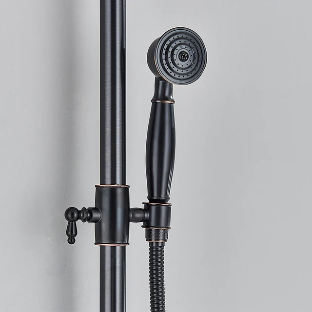 Fekete Bronz Retró Antik Sárgaréz Zuhany Csaptelep Zuhanyrózsa Zuhanyrendszer 4 funkciós Keverő Forró Hideg Vízkeverő Fürdőszoba Falra Tartó