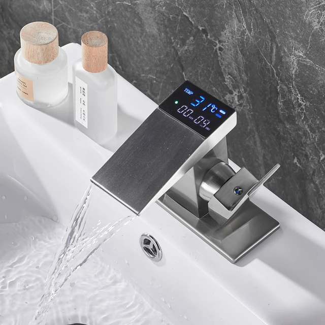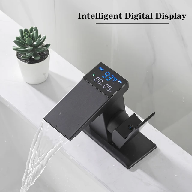 Fekete Digitális Kijelző Medence Kézmosó Csaptelep Forró Hideg Vízhőmérséklet Led csap Fürdőszoba Keverő