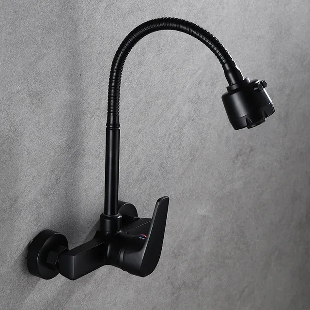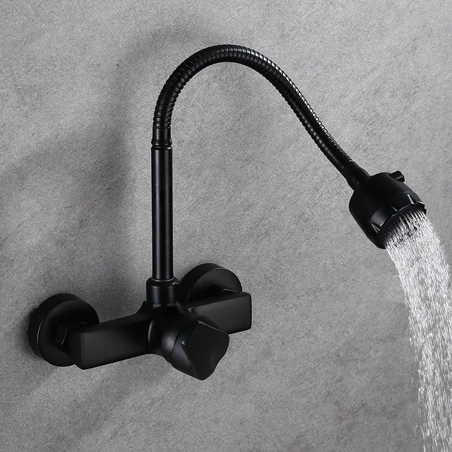 Forgó Kád Csaptelep Falra Konyhai Csap Sárgaréz Anyag Fekete Kézmosó Keverő csap
