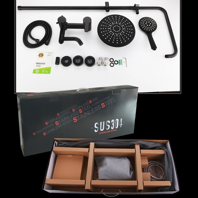 Fürdőszoba Csapadék Zuhanykeverő Csaptelep Kettős Fürdő Zuhany Készlet Fekete Zuhanyzó Rendszer réz
