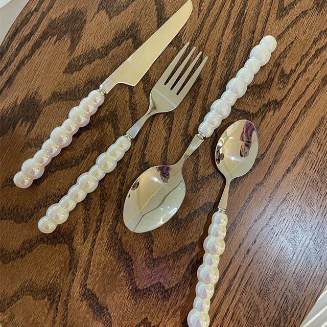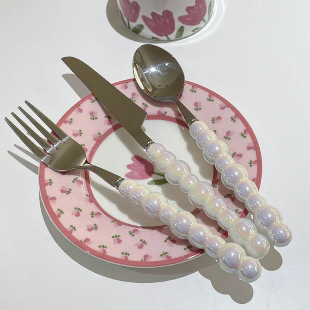 Ins Stílus Rozsdamentes Acél Kés k Kanál Magas Szépségű Kerámia Gyöngy Asztali Steak Desszert