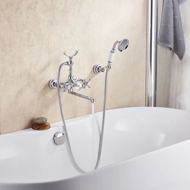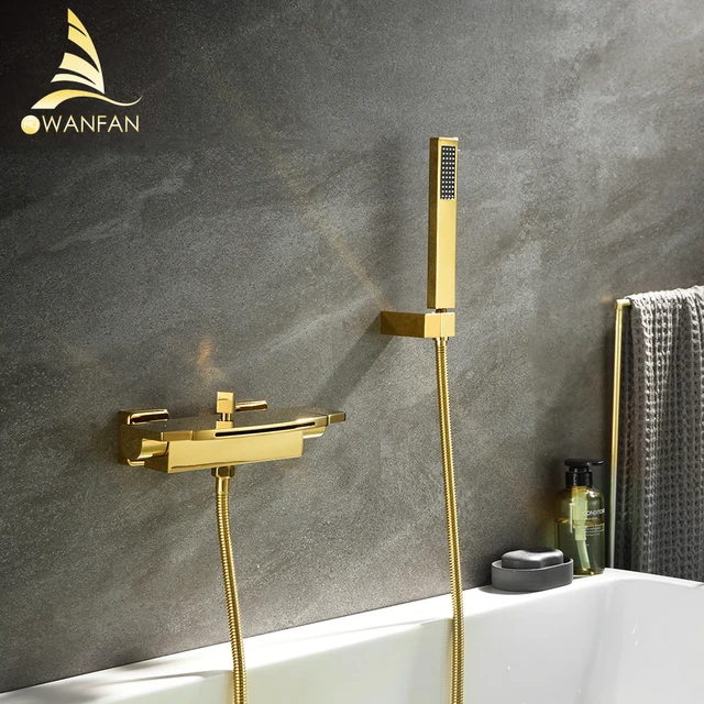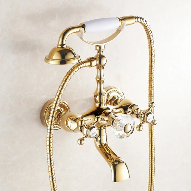 Kád Csaptelepek Luxus Arany Sárgaréz Fürdőszoba Csaptelep keverő Csap Falra Szerelt Tartott Zuhanykészlet Zuhany Csaptelep Készlet HsG018