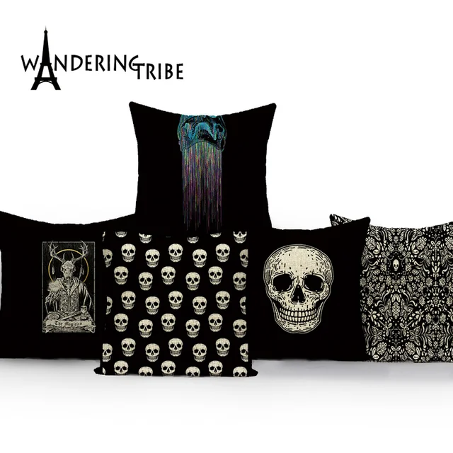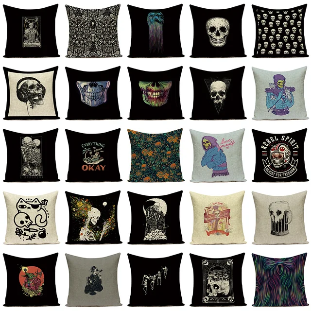 Klasszikus Koponya Párnahuzat Cukros Dekoráció Hálószoba Párna Tok Vászon Nyomtatott Otthoni Autó Ágy Borító
