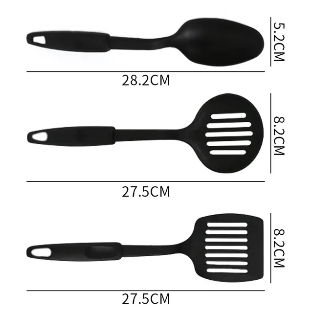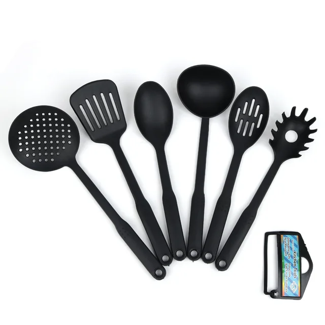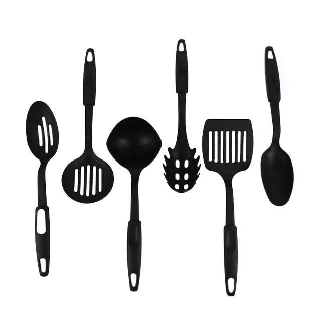 Konyhai Edények Készlet Fekete 6 Db Készlet Nem Állvány Kockázati Eszközék leves Kanál Spatula Lapáttal