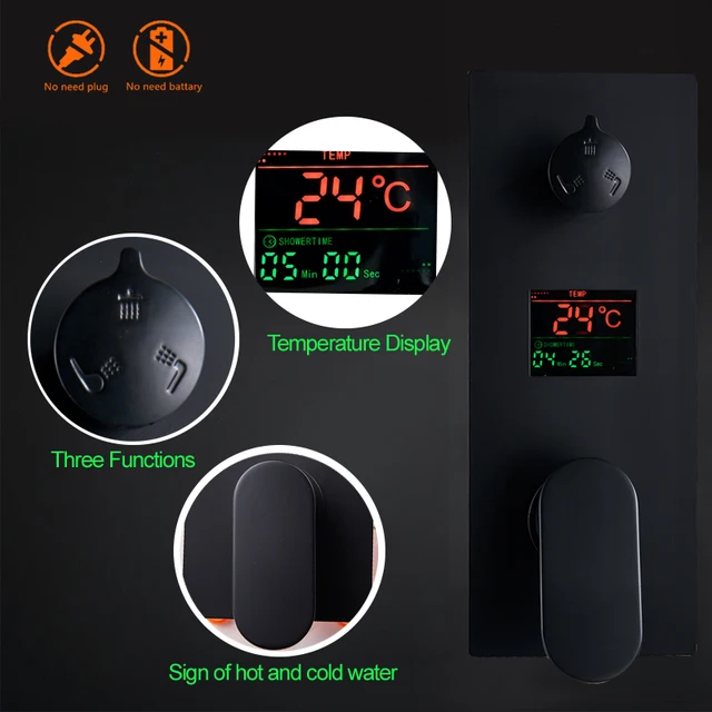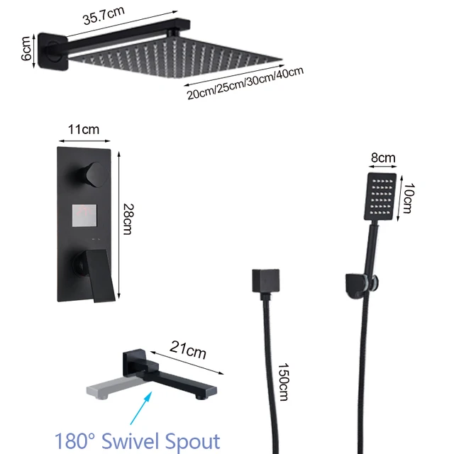Matt Fekete 10,12 Csaptelep Készlet Digitális Kijelző Zuhanyrózsa Fekete Fürdőszürke Vízesés Zuhany Kád Keverő Csap