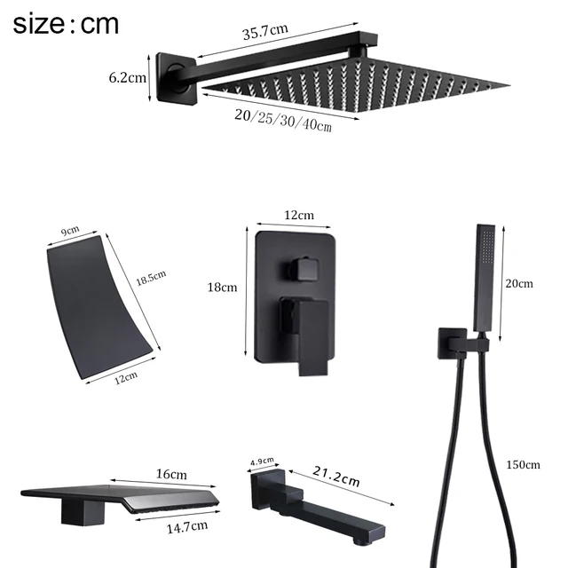 Matt Fekete Falra Szerelt Fürdőszoba Zuhany Zuhanyrózsa Vegyes Forró És Hideg Vízkeverő Csap Beágyazott Doboz Vezérlő Szelep