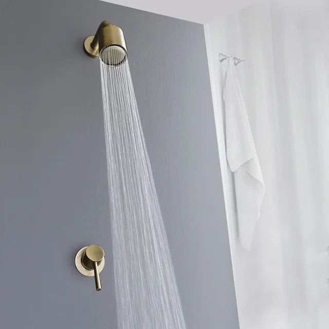 Nagynyomású Kefe Arany Sárgaréz Zuhany Fej Egyetlen Funding Zuhanyfej Fürdőszoba Felső Víz Megtakarító Fürdő Falra Szerelhető