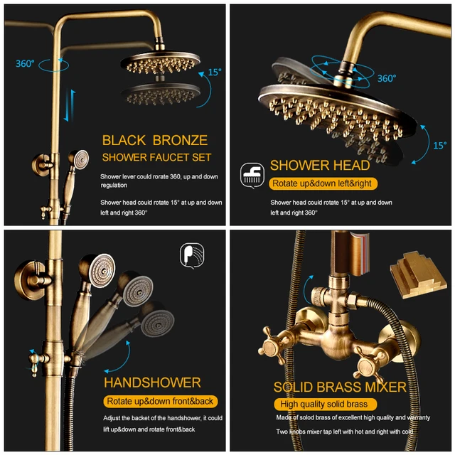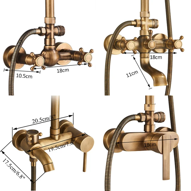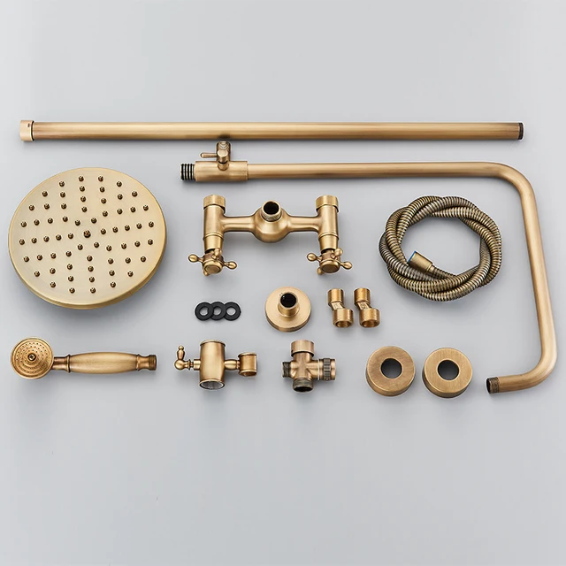 Antik Sárgaréz Zuhany Csaptelepek Készlet Falra Szerelhető Zuhanykészlet Kettős Gombok Keverő Csap Kád