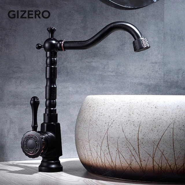 Újonnan Fekete Bronz Medence Csaptelep Mosogató Hideg És Forró Fürdőszoba Keverő Dugós 360°Fokos Forgó Cső Konyhai