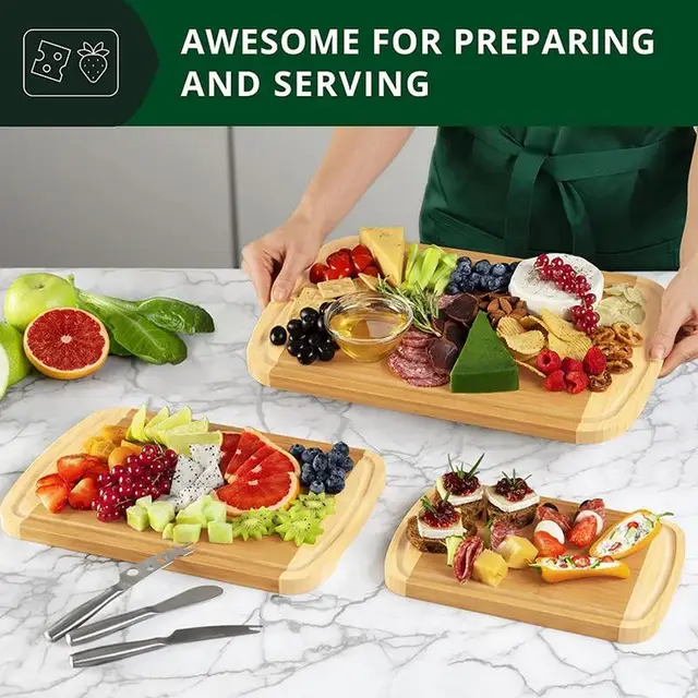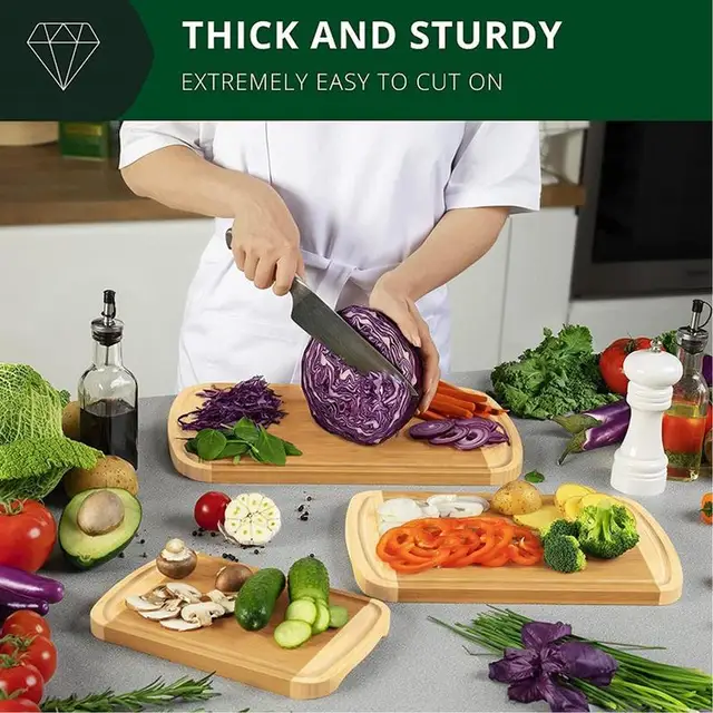 Vágódeszka Natúr Bambusz Fa Készlet Hentes Hús Zöldségek