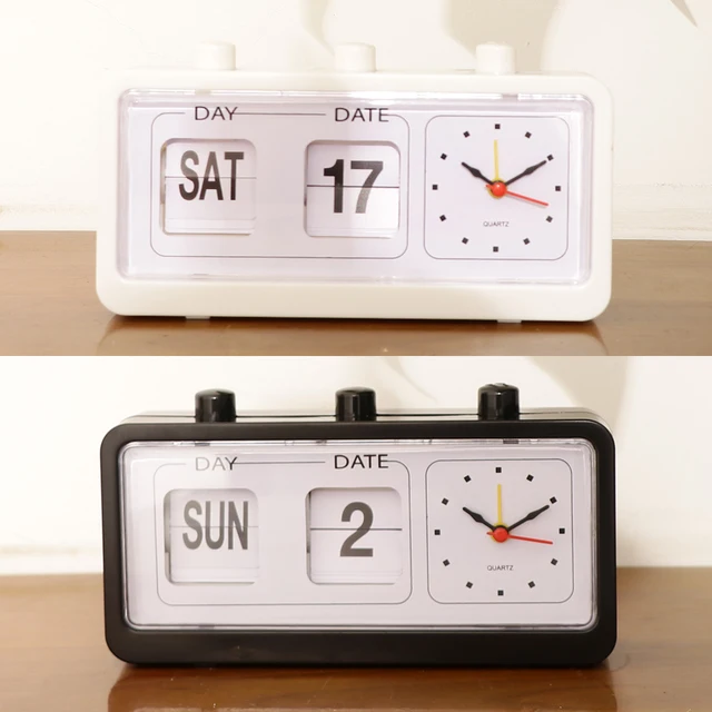 Vintage Retró Óra Ébresztőóra Flip Naptár Kijelző Óra Napi Dátum Idő Megjelenítés Otthoni Hálószoba Dekoráció